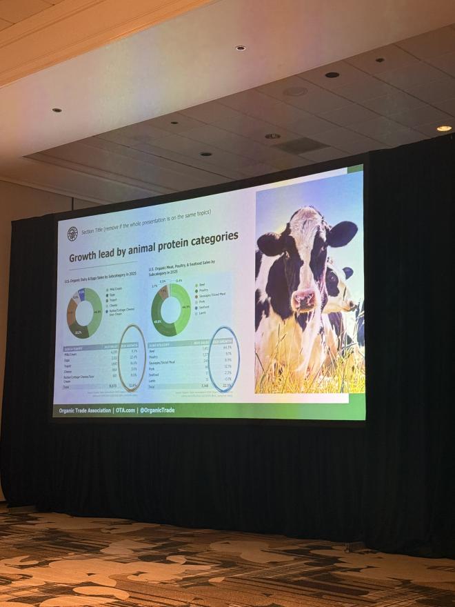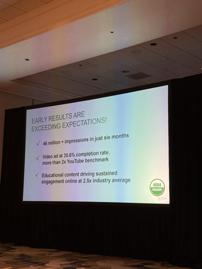 OTA leaders Tom Chapman, Matthew Dillon, and Sandy Pfaff delivered a comprehensive overview of the organic industry. The session highlighted key findings from the Organic Market Report, emerging consumer and category trends, policy developments impacting organic, and the launch of Seal Makes It Simple—a national campaign designed to simplify organic for consumers and help grow demand.