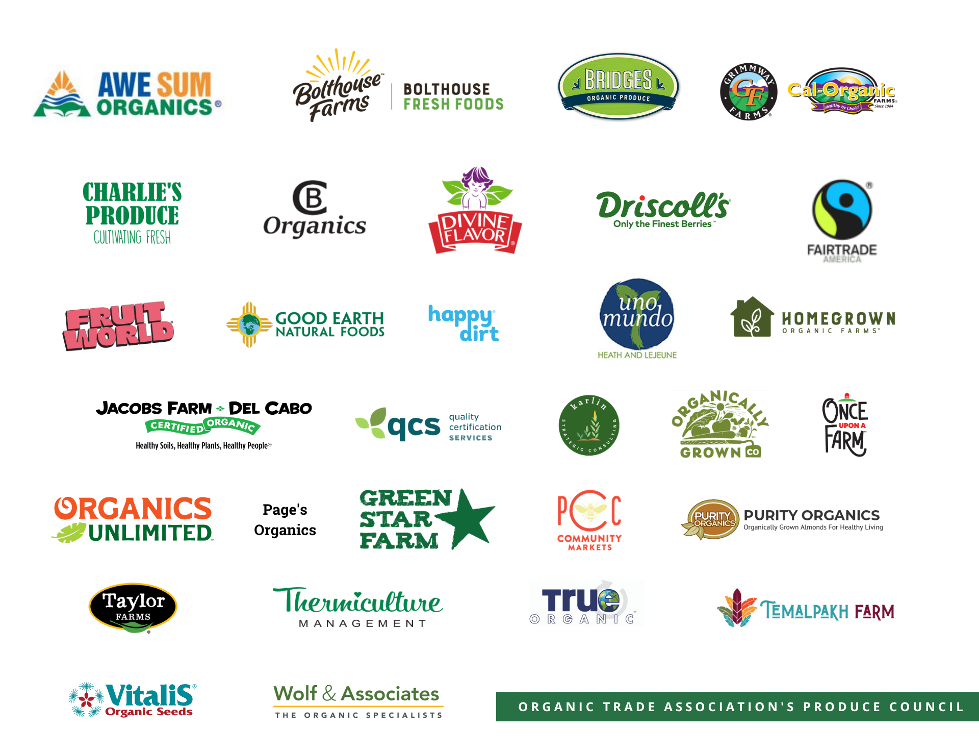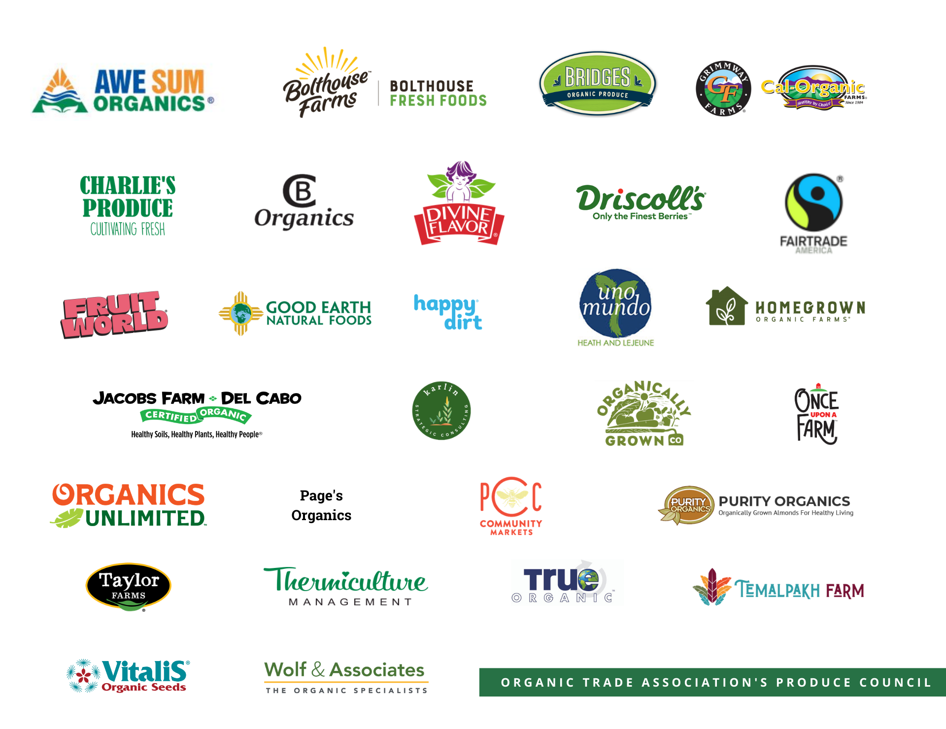 Nearly 30 Organic Trade Association member companies currently participate in the Produce Council. They represent the full organic produce supply chain, including growers, distributors and retailers.