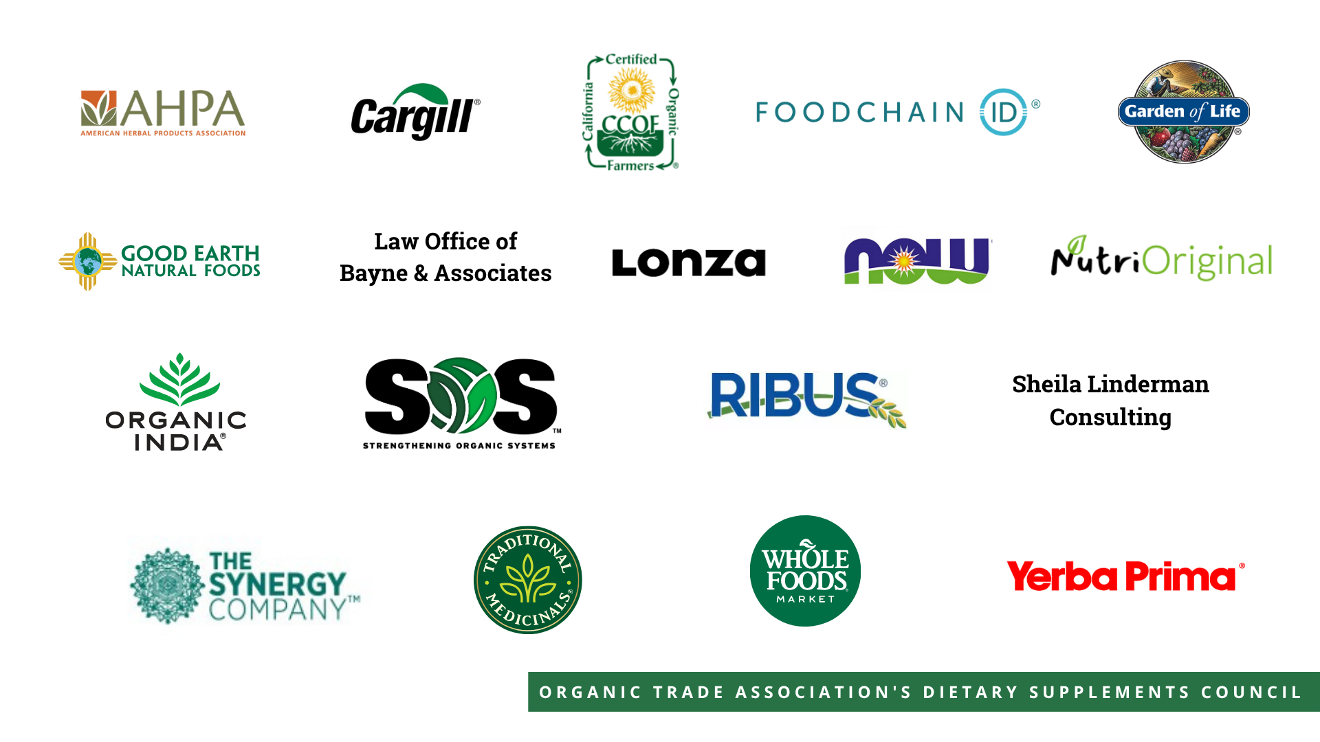 Over 20 Organic Trade Association member companies which represent the organic dietary supplements supply chain including manufacturers, certifiers, retailers, industry partners, and more and currently participate on the Dietary Supplements Council.