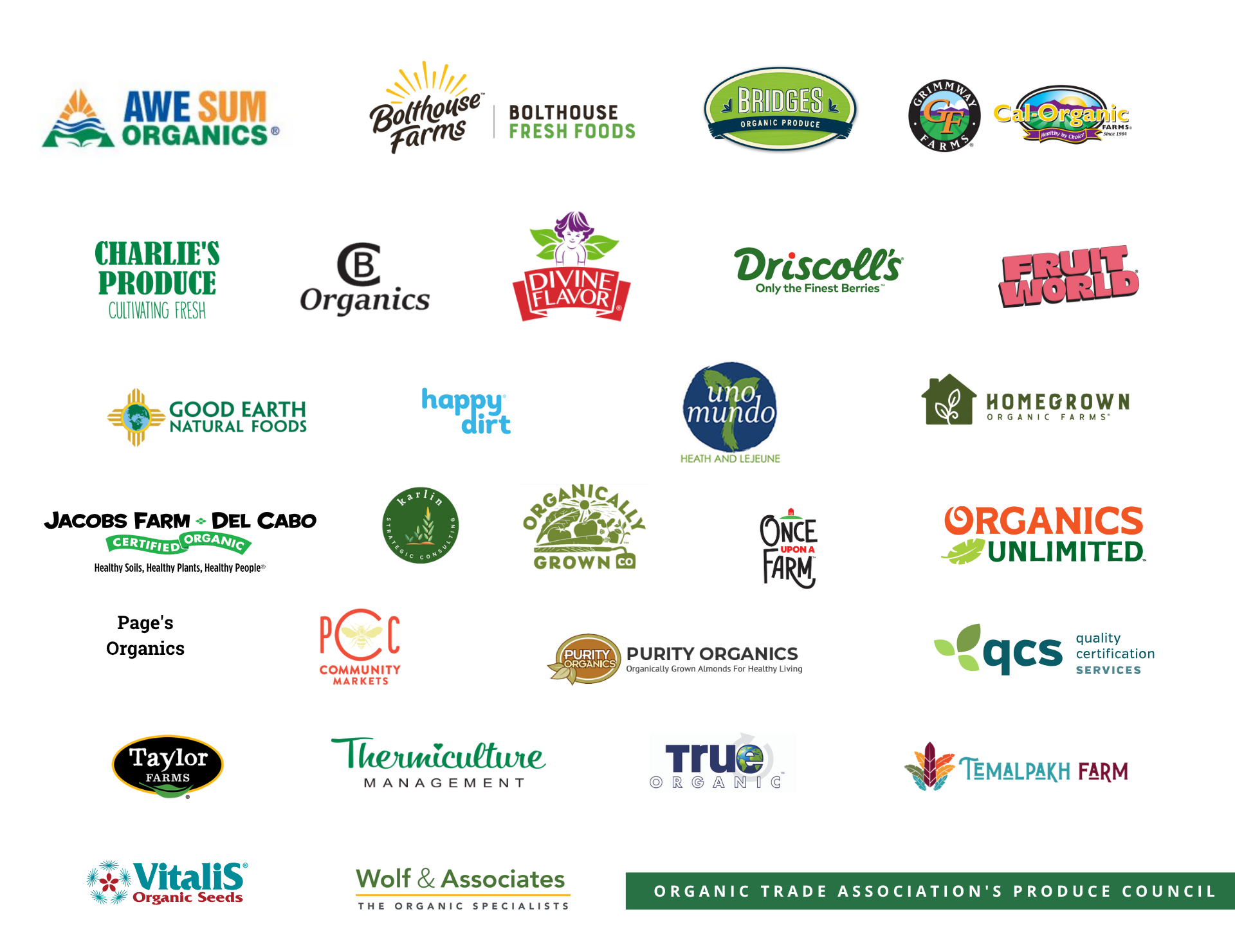 The Organic Trade Association’s Produce Council is a community of diverse stakeholders across the organic produce value chain that convenes on issues of importance to the organic produce sector. The Council amplifies the needs of the produce community within OTA and serves as a venue for shared learning and advancing outcomes to support a thriving and resilient organic produce sector.
